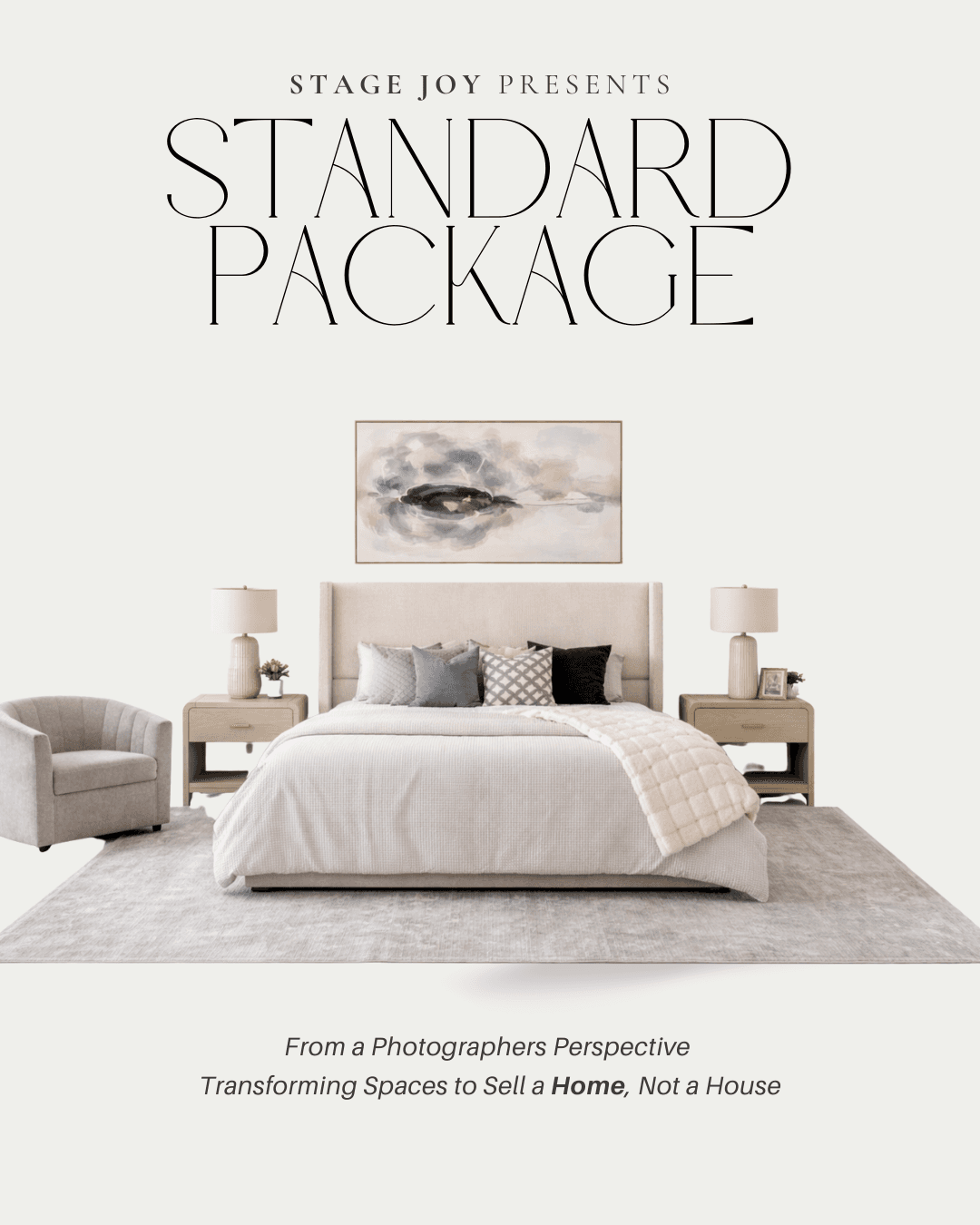 We fully furnish the five essential spaces—living room, kitchen, dining area, primary bedroom, and primary bath—to help buyers understand scale, flow, and lifestyle. Each room is intentionally designed to feel cohesive and inviting. Additional rooms can be staged as needed to support the home’s layout and value. The goal is simple: make an empty home feel complete and emotionally compelling.